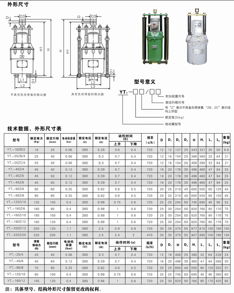 型號:YT1-18Z/2,YT1-25Z/4,YT1-45Z/6,YT1-90Z/8,YT1-125Z/10,YT1-180Z/12 YT1-320Z/20